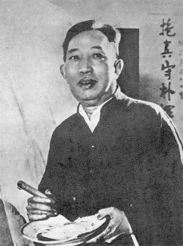 傅抱石身后的章草,是其六十大寿时由关友声手书贺寿联。